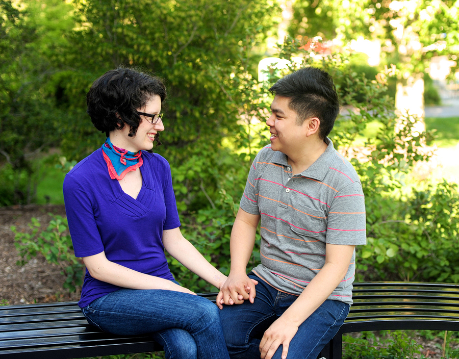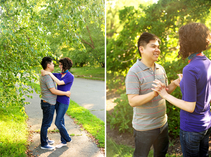 These Arnold Arboretum engagement photos with Allison & Duy were filled with so much sweetness and nervous laughter! These two were married in Maine, but they wanted to do their engagement session a little closer to home, so we met up at the Arnold Arboretum in Boston! I had wanted to visit this spot for years and I’m so glad I did — and so sad it took me so long! It’s stunning — massive grounds filled with so many beautiful trees, flowers, and plants. These two were awesome to photograph — super loving with some nerdy jokes thrown in for good measure. 🙂
