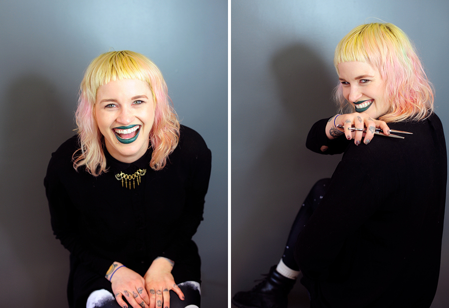 Maine hairstylist head shots are not something I’ve had the pleasure of doing… until I took these photos for Tasha, which were SO FUN! Tasha has been my hairstylist (and hair colorist) for YEARS — she’s amazing. We have also worked together in a professional capacity many times! I photographed a boudoir session for her years ago… we collaborated on a model shoot when she worked at O2 salon… we did the most incredible milk bath boudoir session… we collaborated on a sea witch model shoot… and then I even did sibling photos of her with her brother! This time she needed not only some updated head shots but some photos of her on the job, so we met at Kutz Inc. in Portland while she worked her magic on Catie (who is also a good friend of mine and has assisted at many a wedding!). It was hilariously fun and, as always, I was blown away by her skill and artistry. If you’re in need of a hair update of any kind, CONTACT HER — she books up quick!!